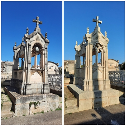 Traitement biocide et restauration d'une chapelle en calcaire, à Saint Rémy de Provence, Automne 2024